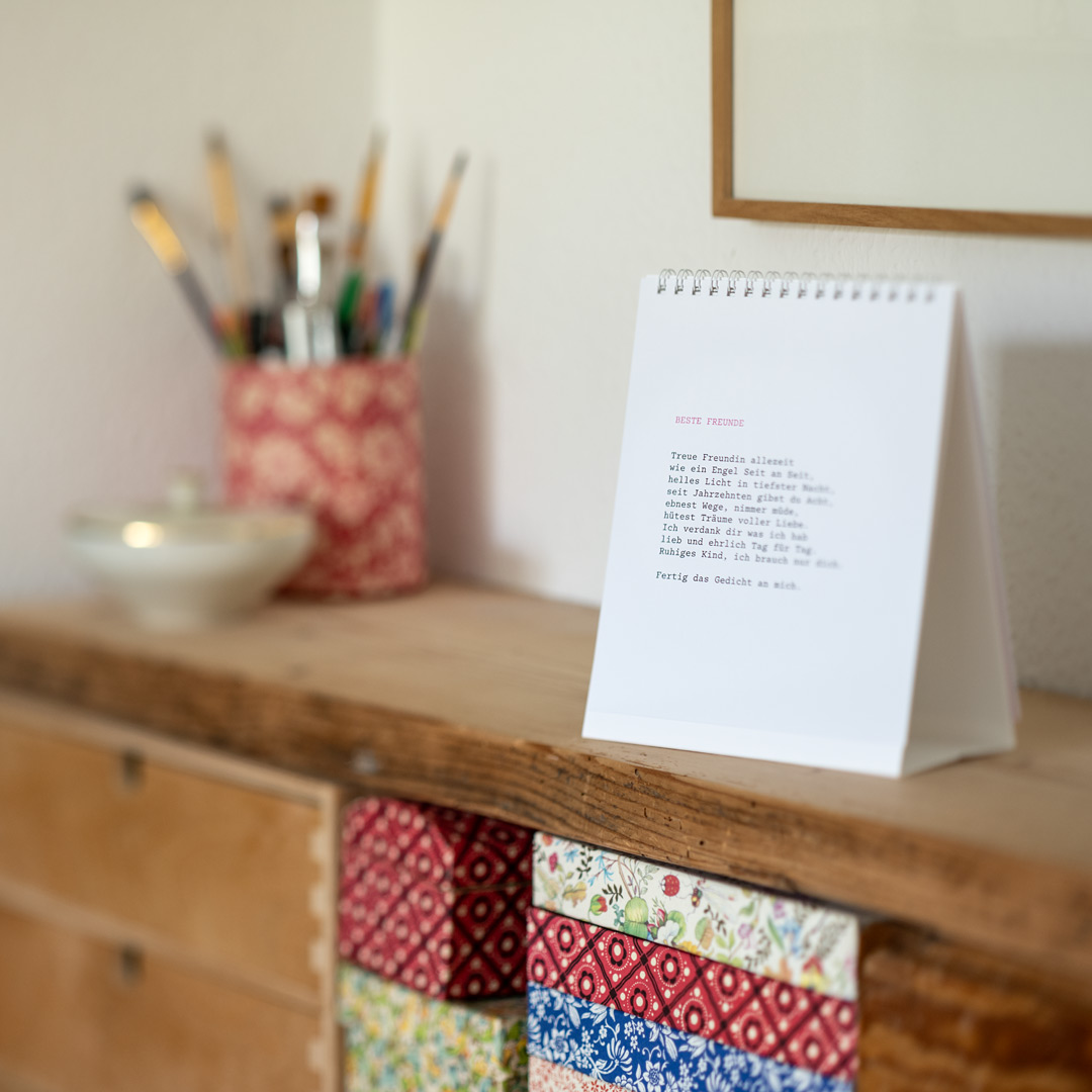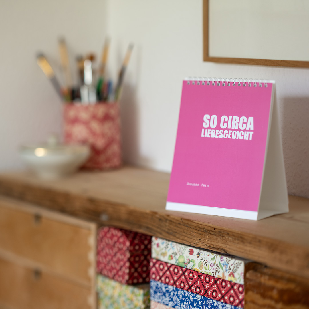 Ab sofort kann mein neuer Wandkalender SCHNEIDERKREIDE 2026 bestellt werden im Bundle mit SO CIRCA LIEBESGEDICHT – einem Tischaufsteller mit 12 Versen aus meiner Feder.